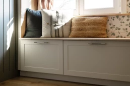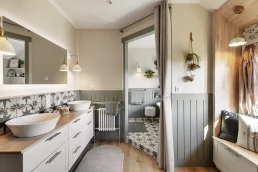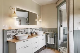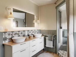 Ce qu’elle affectionne par-dessus tout : le style cottage anglais, qui imprègne d’ailleurs l’ensemble de sa maison. Il était donc essentiel de retranscrire cet esprit dans la nouvelle salle de bain, en sélectionnant des matériaux à l’aspect ancien et chaleureux, tout en respectant les codes caractéristiques du style cottage.